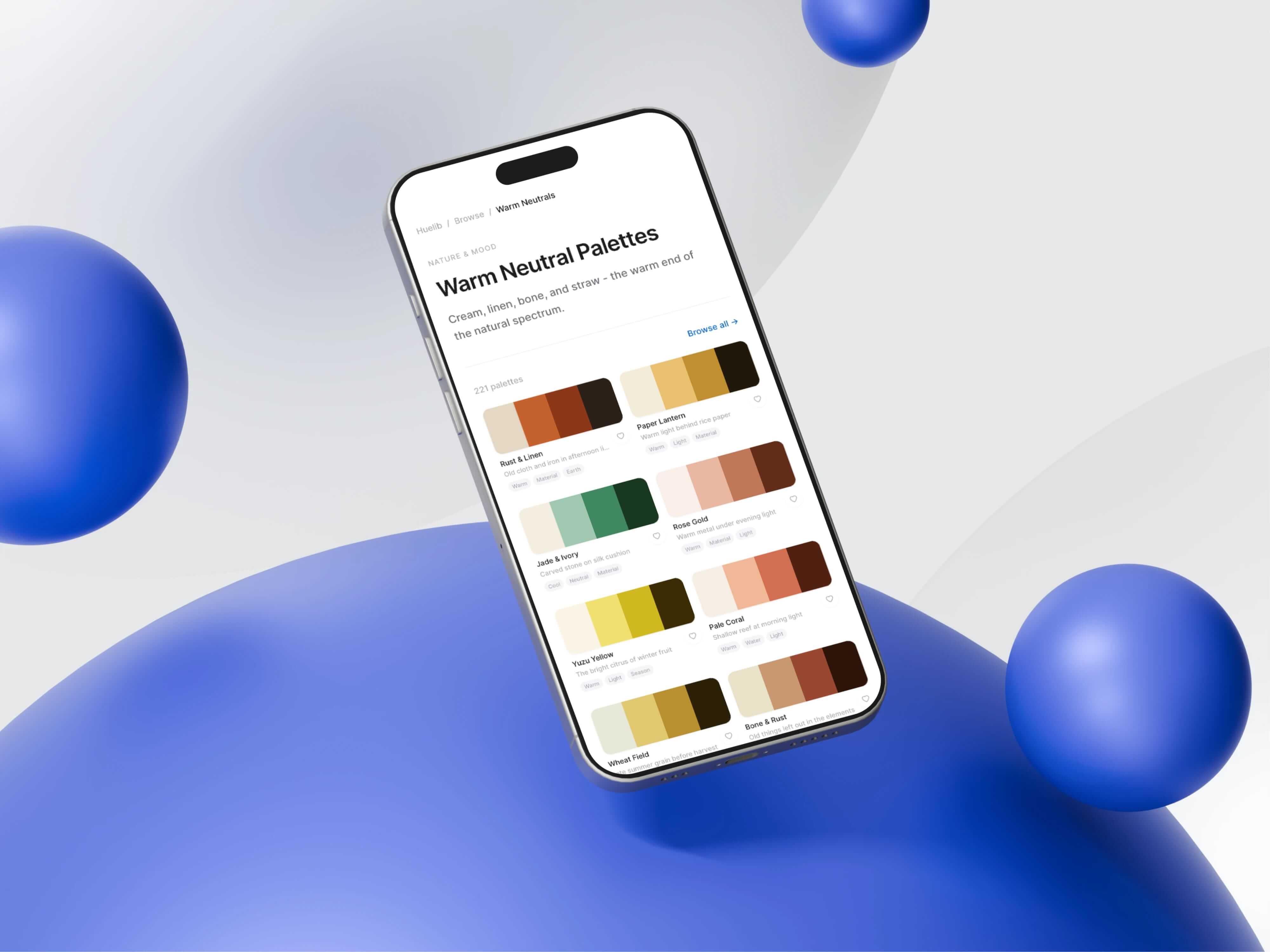 Huelib is a color palette library and workflow platform I designed and built as a solo product.